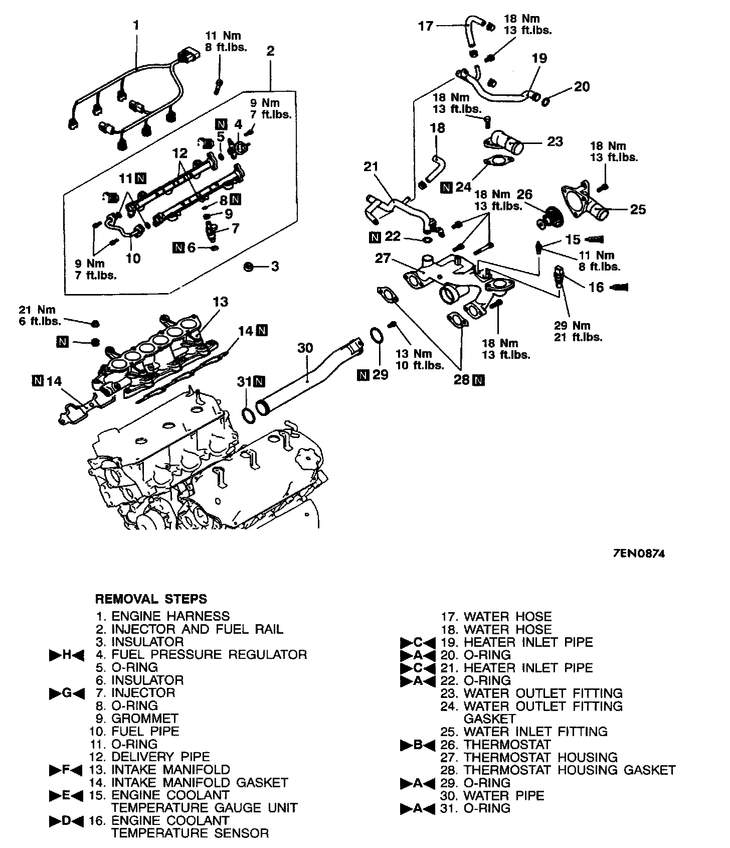 1. Tighten the nuts on the right bank to 5 - 8 Nm (3.7 - 5.9 ft. lbs.).