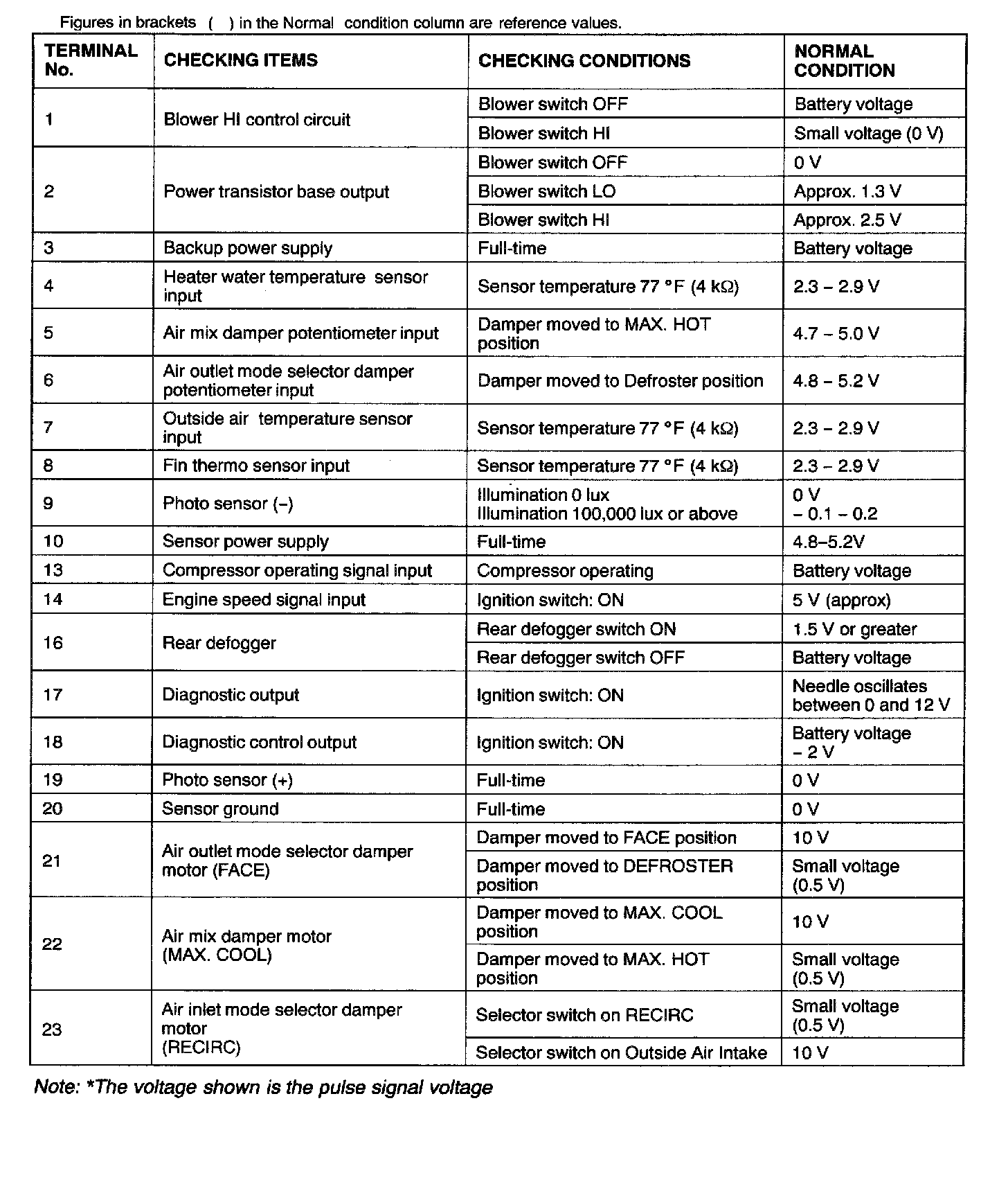 Pinout Values and Diagnostic Parameters