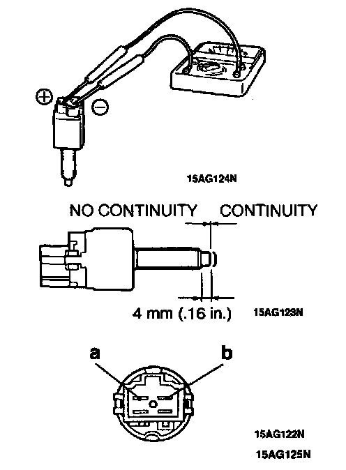 STOP LIGHT SWITCH CHECKConnect a circuit tester to stop light switch terminals "a" and "b" and check whether or not there is continuity when the plunger of the stop light switch is pushed in and when it is released.