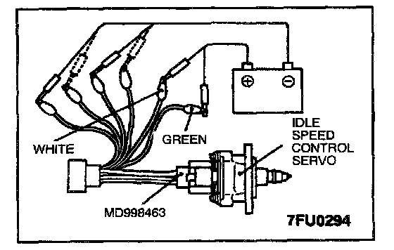 1. Disconnect the idle air control motor connector and connect the test harness special tool MD998463.