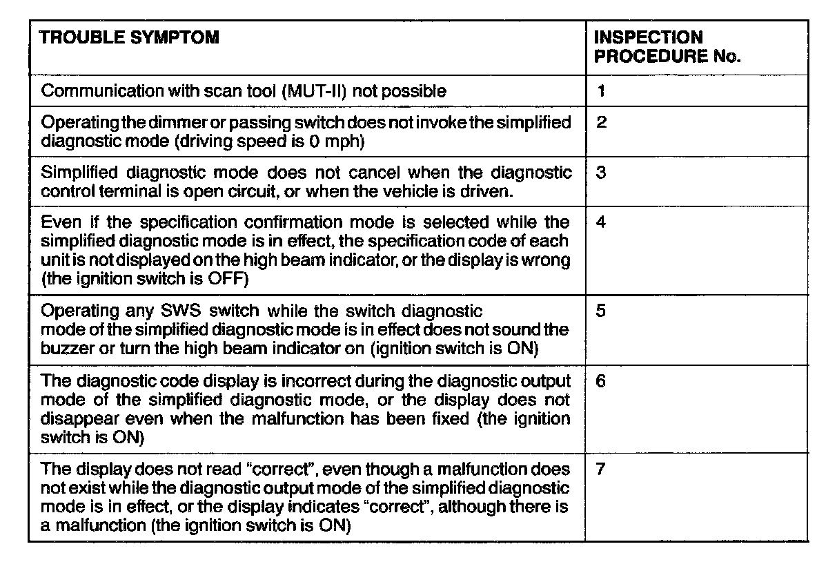 Reference Chart For Trouble Symptoms: