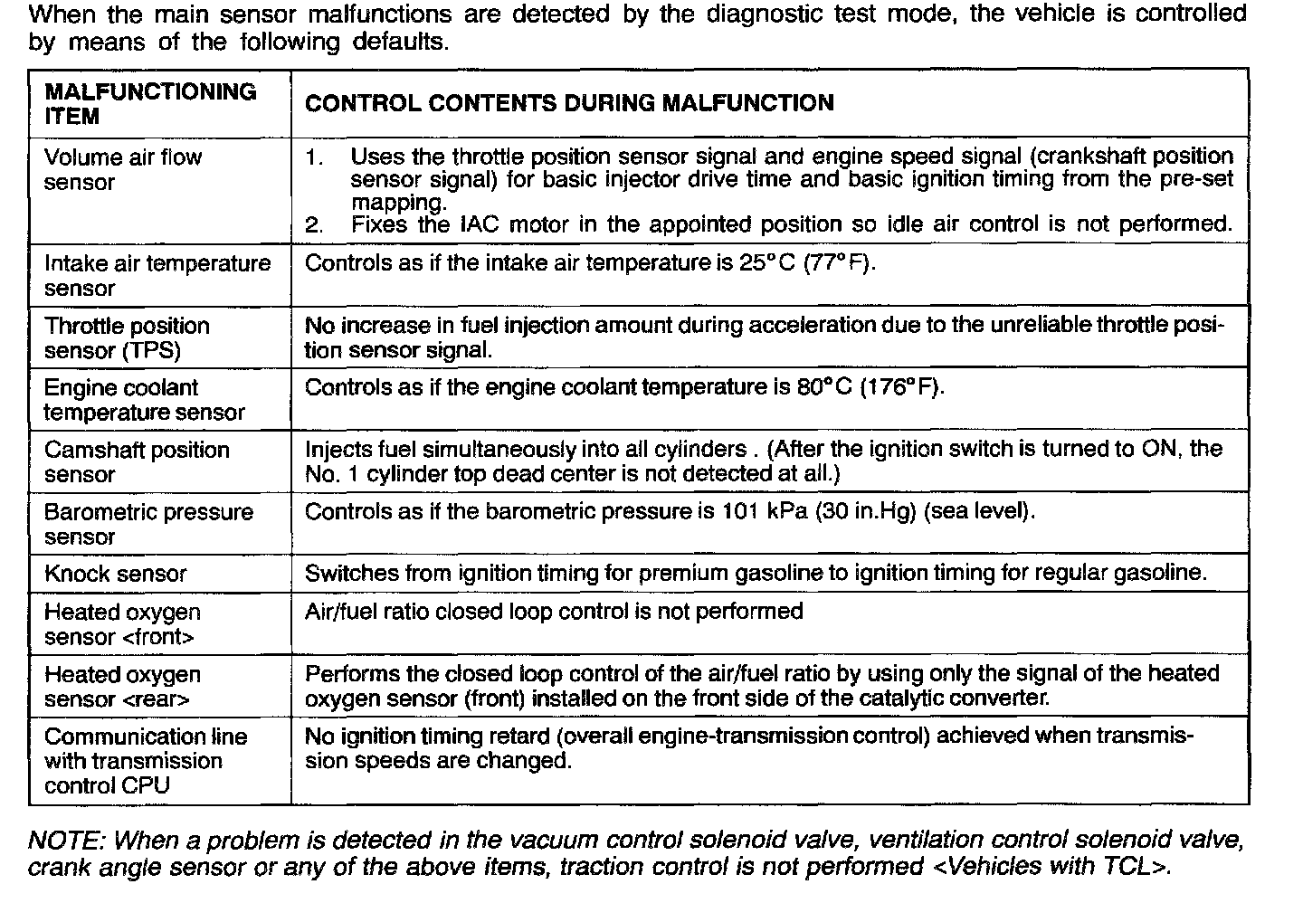 Fail-Safe Backup Function Table: