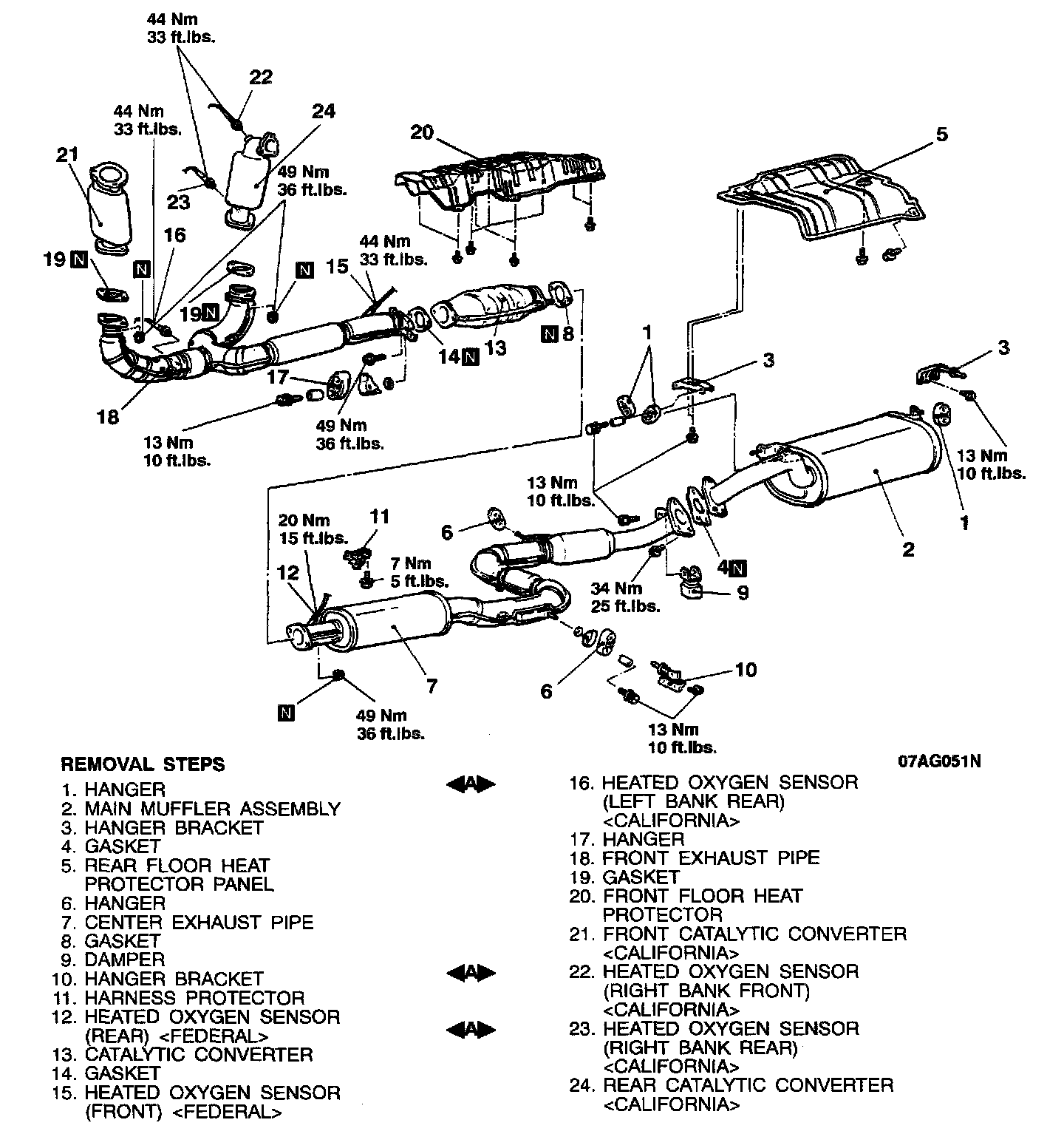 Remove the heated oxygen sensor with the special tool (MD998770).