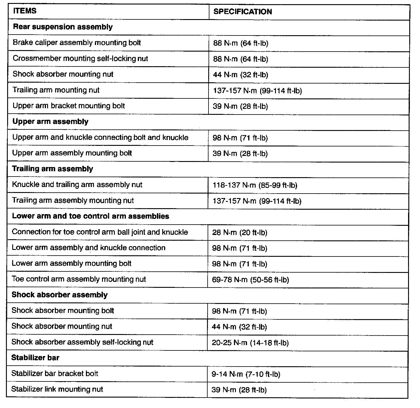 Fastener Tightening Specifications