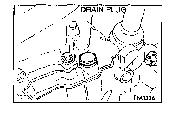 4. Remove the drain plug at the bottom of the transmission case and discharge the ATF