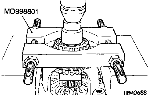 NOTE: Select the medium size spacer [0.93 - 1.00 mm (0.0366 - 0.0394 inch)] when assembling a new side gear.