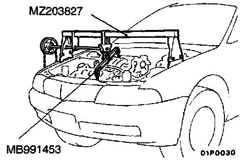 1. Fit the special tool to the vehicle and support the engine and transaxle assembly.