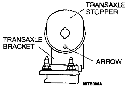 Fit the transaxle mount stopper so that the arrow points in the direction shown in the diagram.