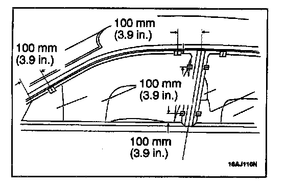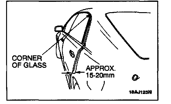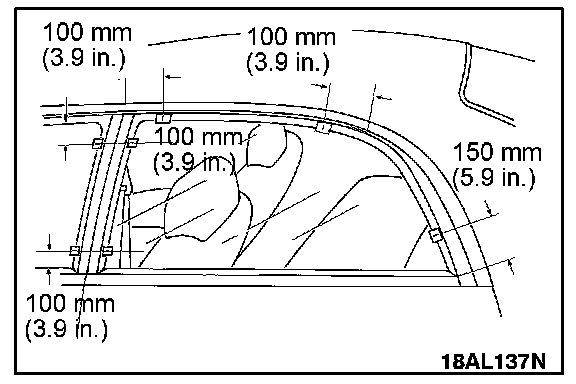 1. Place masking tape on the edge of the door glass in the positions as shown in the illustration.