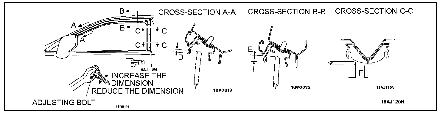 DOOR GLASS ADJUSTMENTCHECKING THE FRONT WINDOW GLASS SETTINGS