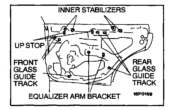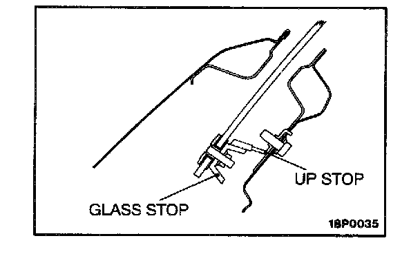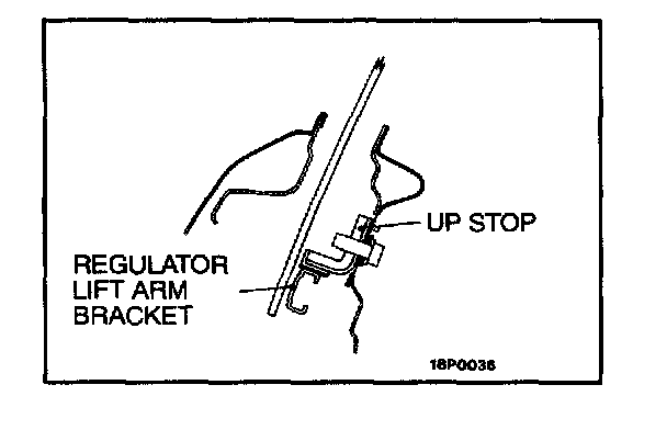 10. Recheck the glass intrusion, "soft touch" and glass margin. Alter glass intrusion by moving the up stops. Alter "soft touch" by adjusting the lower regulator mounting studs.