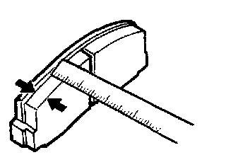Measure thickness at the thinnest and worn area of the pad. Replace pad assembly when pad thickness is less than the limit value