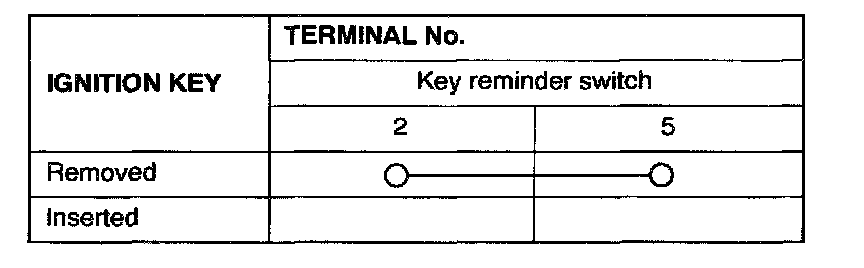 2. Disconnect the wiring connector from the key reminder switch and connect an ohmmeter to the switch side connector.