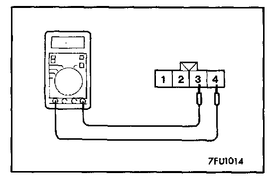 2. Make sure that there is continuity [7 - 40 Ohms at 20 °C (68 °F)] between terminal 3 and terminal 4 on the heated oxygen sensor connector.