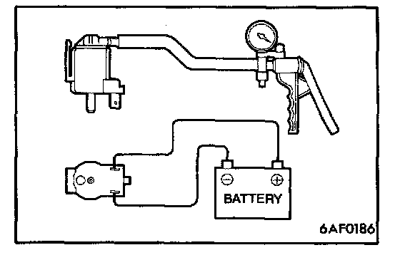 4. Check airtightness by applying a vacuum with voltage applied directly from the battery to the EGR control solenoid valve and without applying voltage.