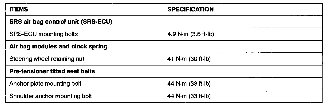 Fastener Tightening Specifications: