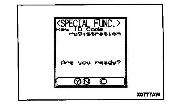 NOTE: Using the key ID register function will cause all key IDs that have been previously registered in the immobilizer-ECU to be erased. All keys need to be registered. Those which have been registered before should be on hand before using this function.