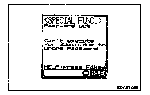 3. If an incorrect password is input five times in a row, this screen is displayed and the immobilizer-ECU switches to "Unauthorized operation, start-prevention mode."