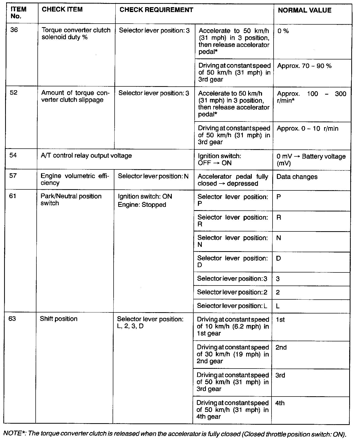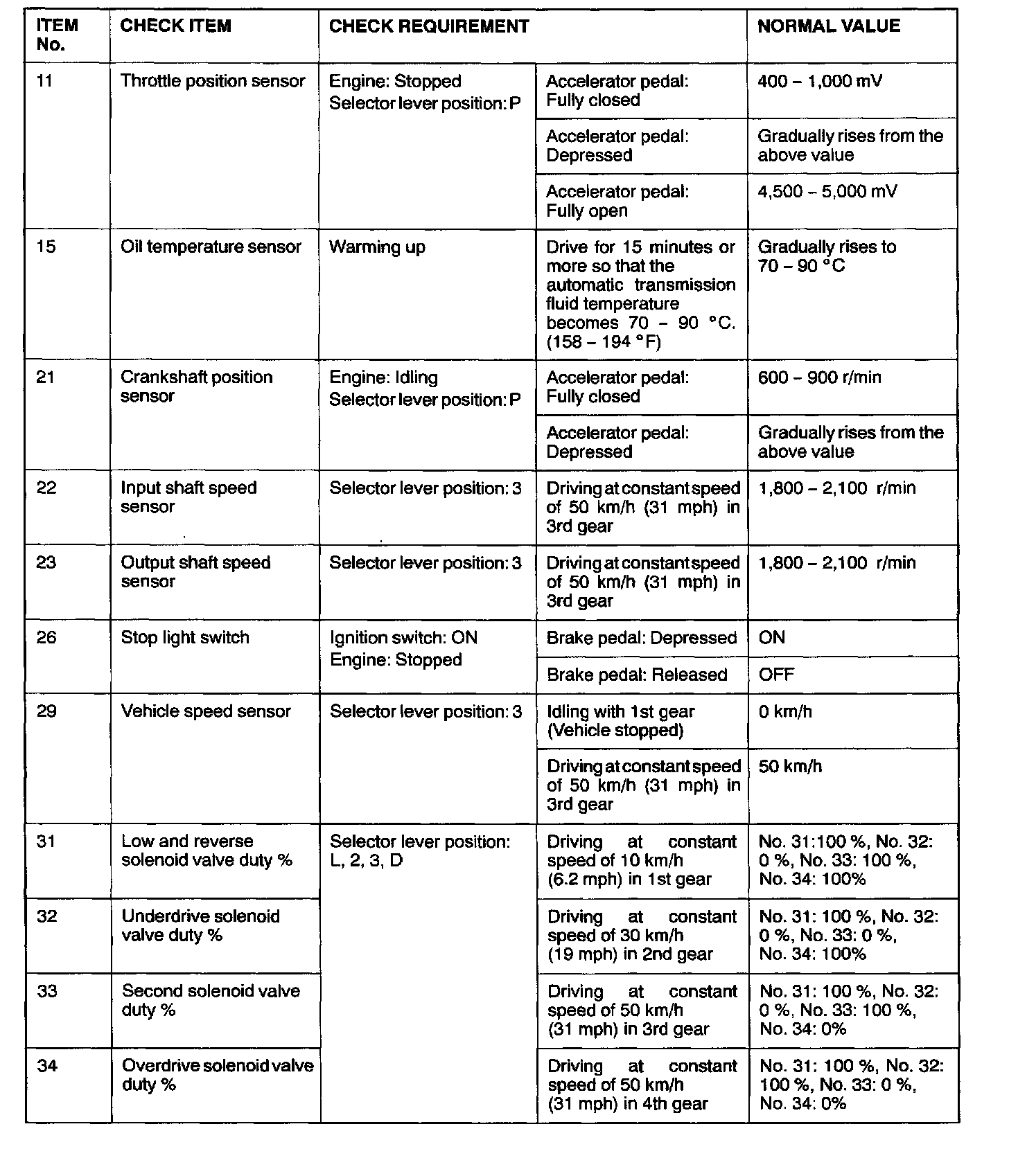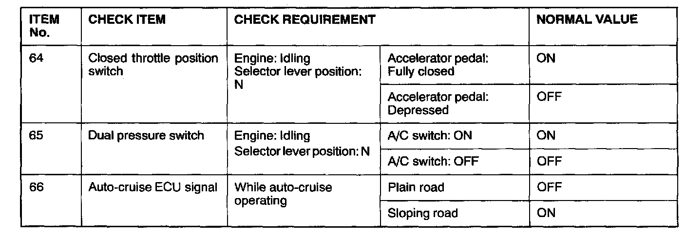 SERVICE DATA REFERENCE TABLE