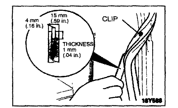 Make a tool as shown in the illustration to remove the door opening weatherstrip
