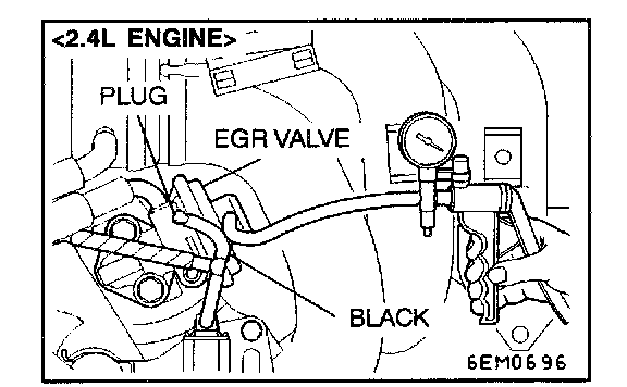 6. The engine idling speed should be rough when a vacuum of 29 kPa (8.7 in.Hg) or more is applied to the EGR valve.