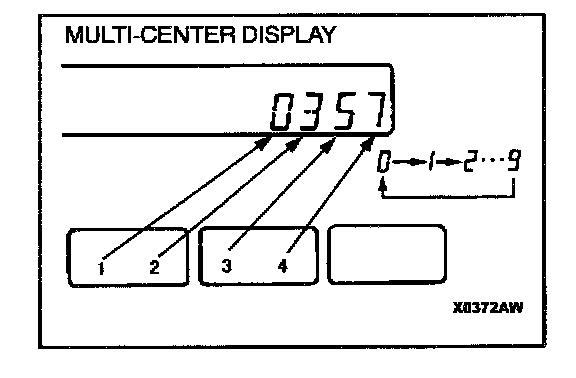 5. Press number 1 through number 4 memory select button to set the four-digit security code shown on the card. Every time each digit key is pressed, the figure changes as follows: 0->1->2->3->4->5->6->7->8->9->0