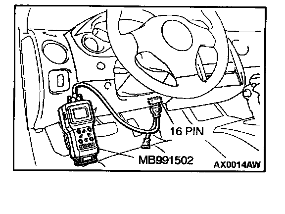 CAUTION: To prevent damage to scan tool MB991502, always turn the ignition switch to "LOCK" (OFF) position before connecting or disconnecting scan tool MB991502.