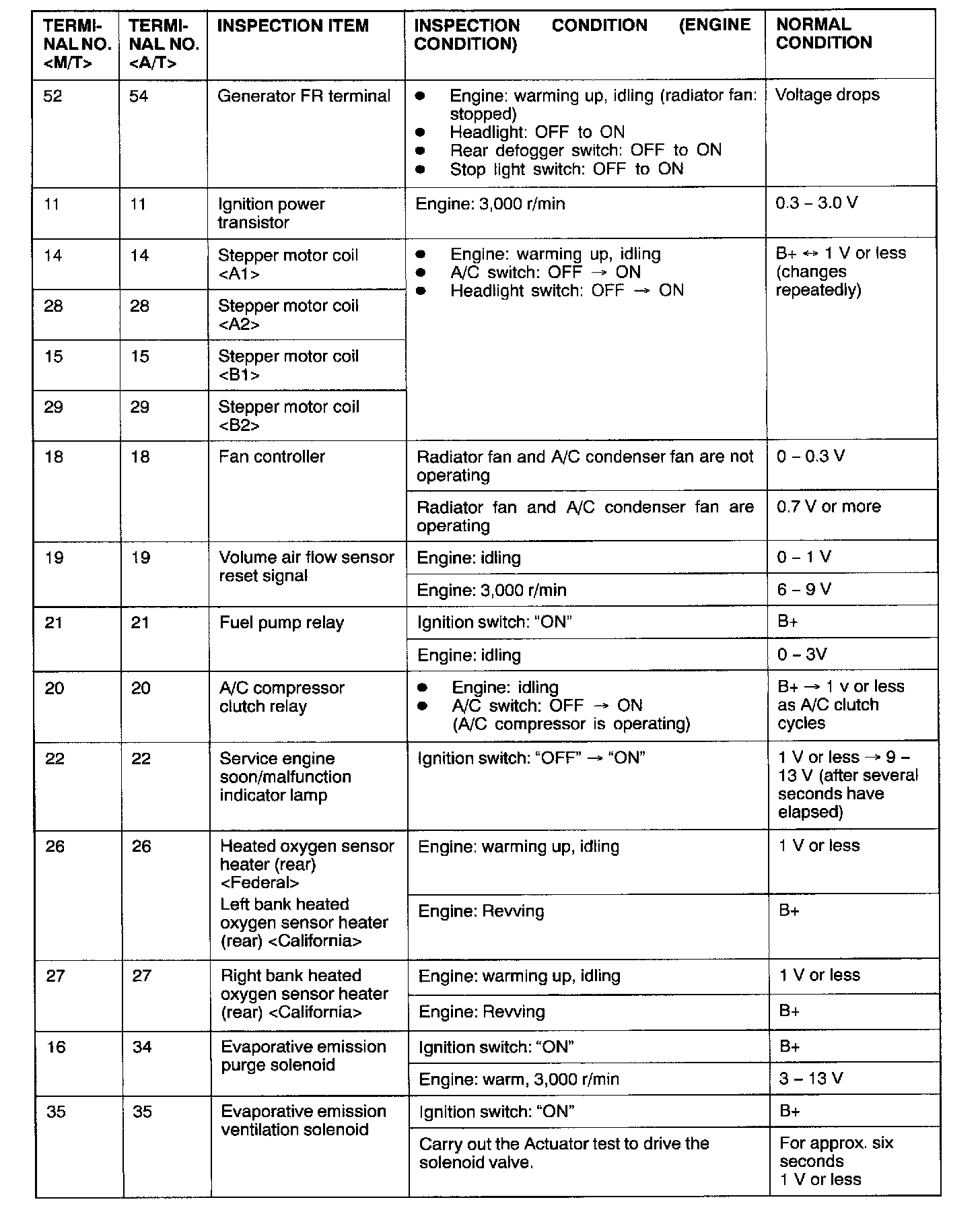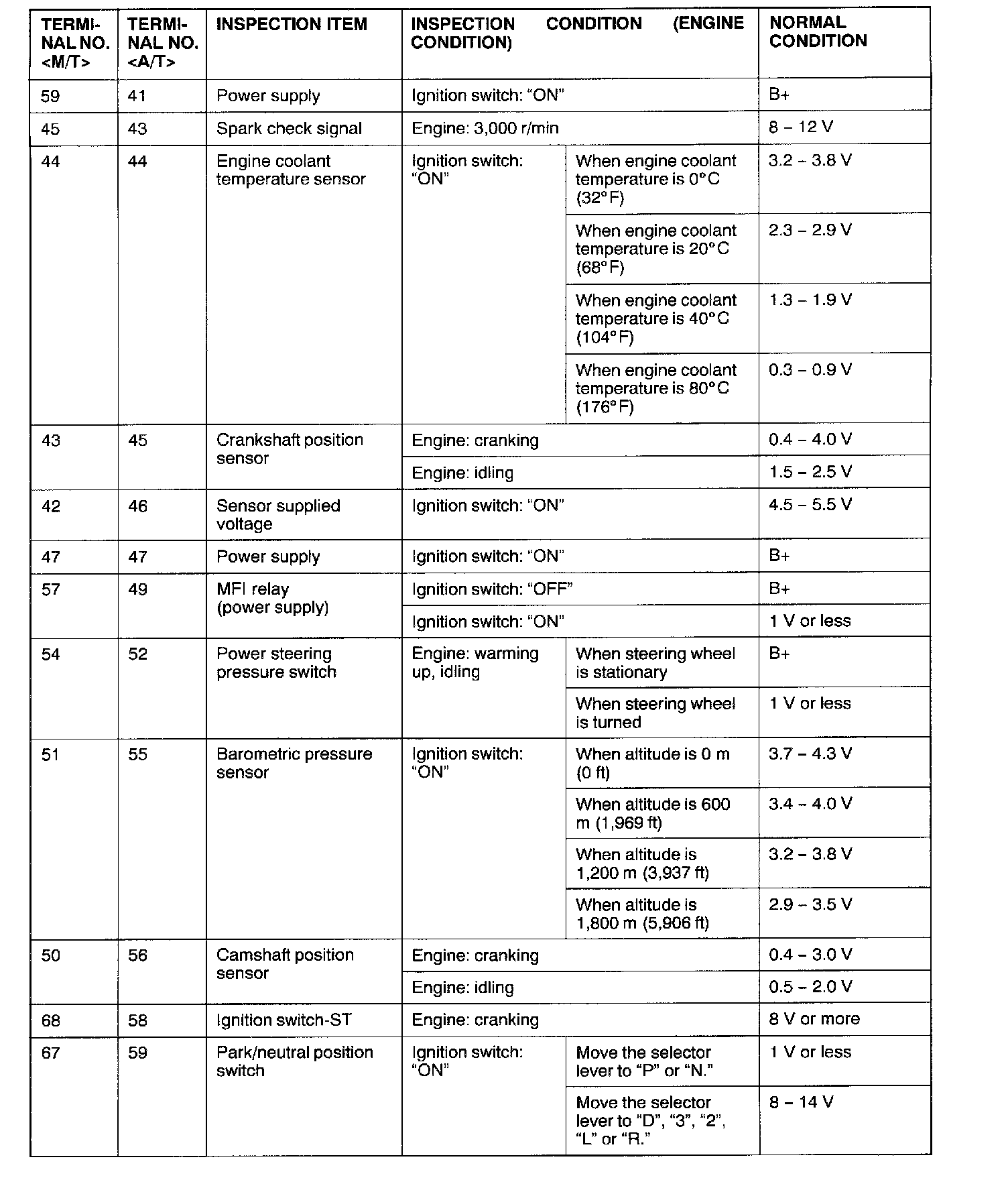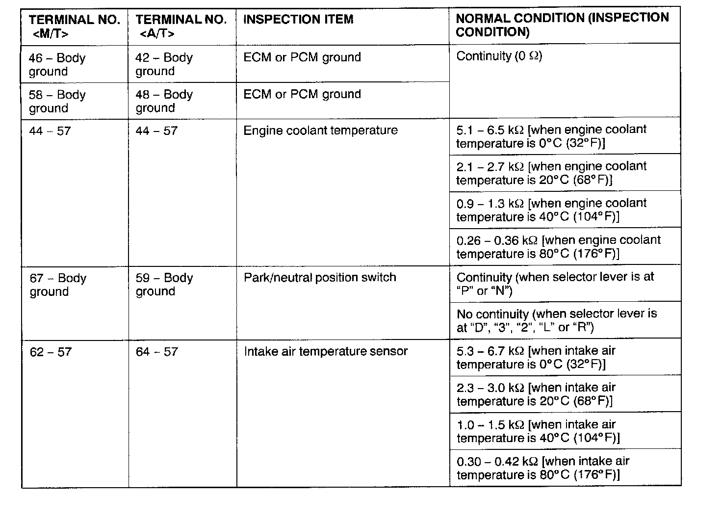 ECM <M/T> Or PCM <A/T> Connector Terminal Arrangement: