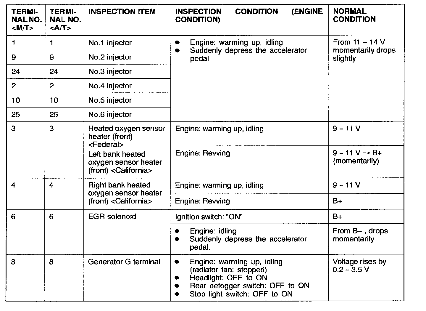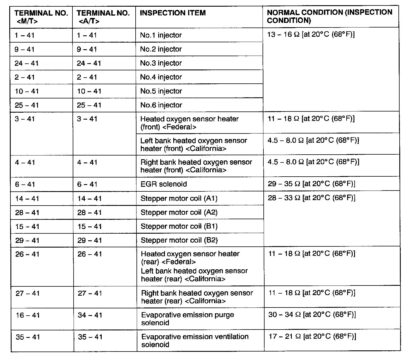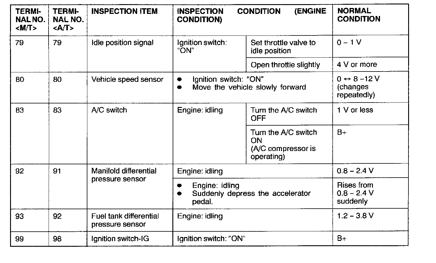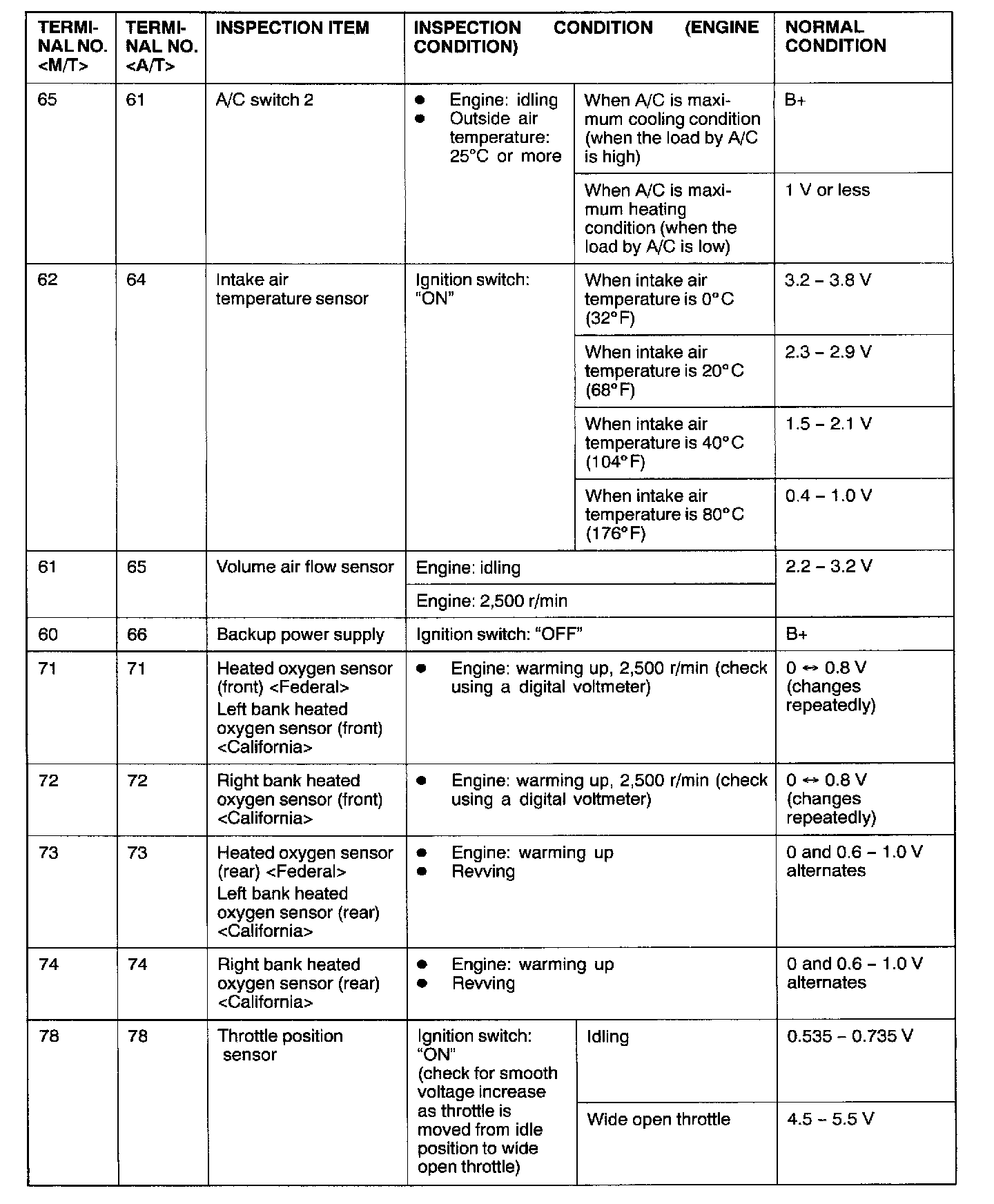 ECM <M/T> Or PCM <A/T> Connector Terminal Arrangement: