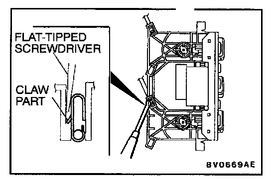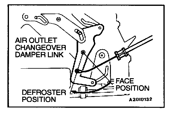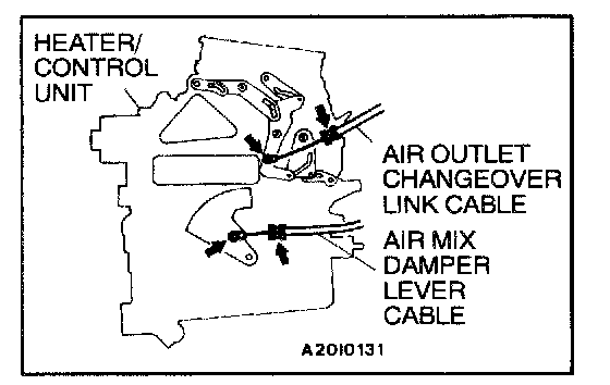 AIR MIX DAMPER LEVER CABLE, AIR OUTLET CHANGEOVER DAMPER LINK CABLE REMOVAL