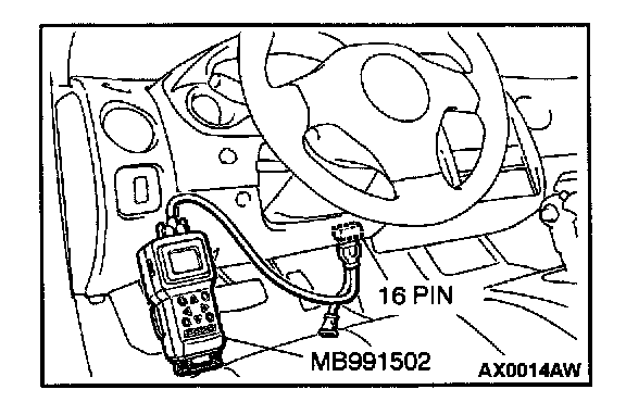 1. Connect scan tool MB991502 to the data link connector.