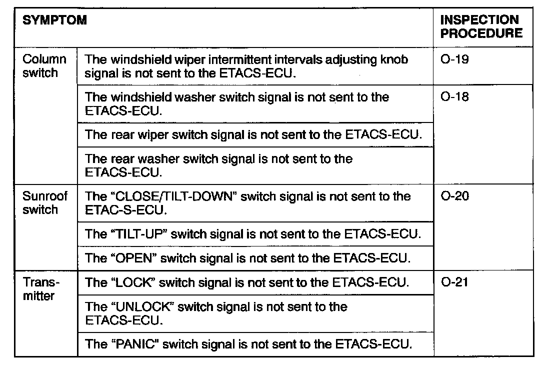 Input Signal Check FunctionThis mode checks the switch input signals to each ECU incorporated in the SWS.
