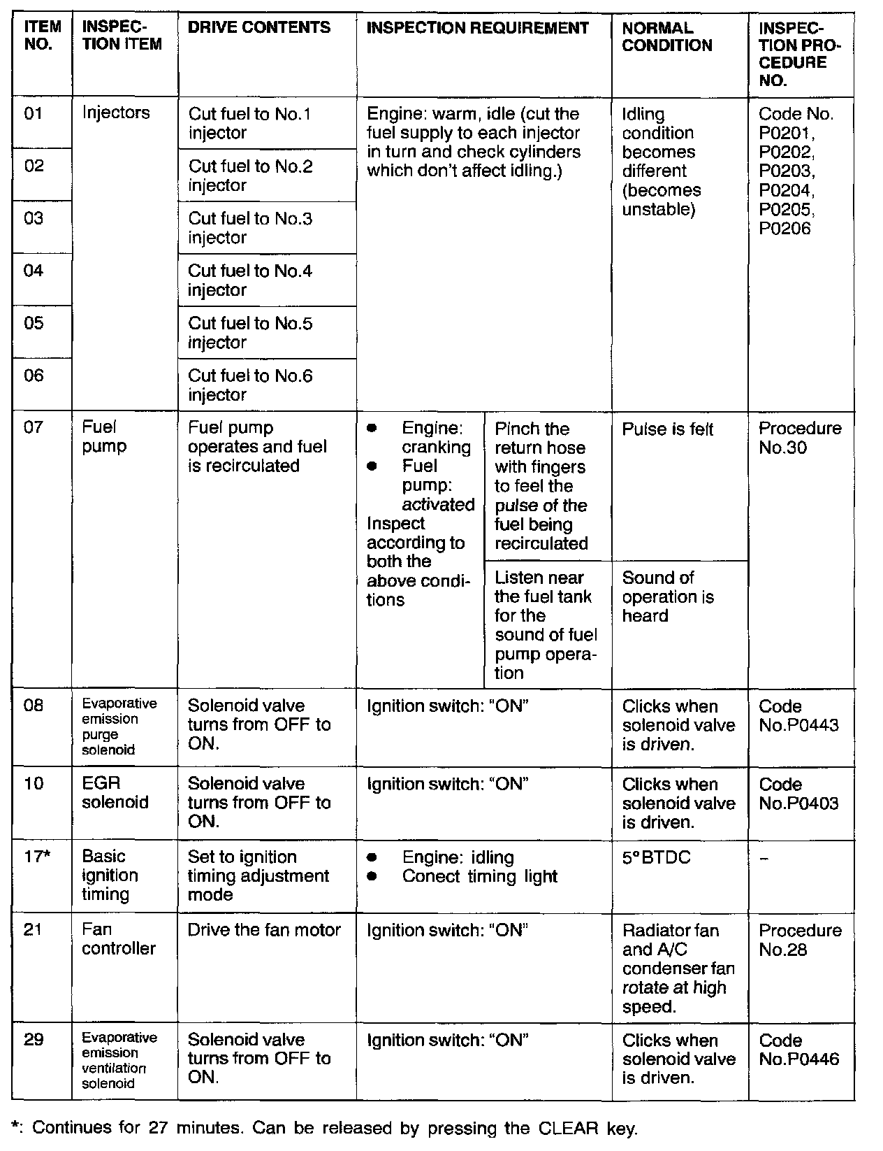 Actuator Test Reference Table