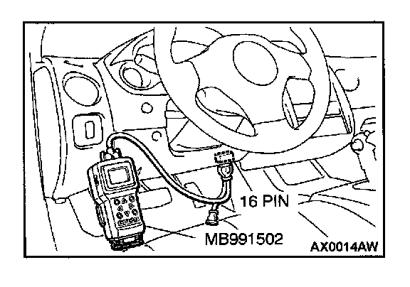 1. Connect scan tool MB991502 to the data link connector.