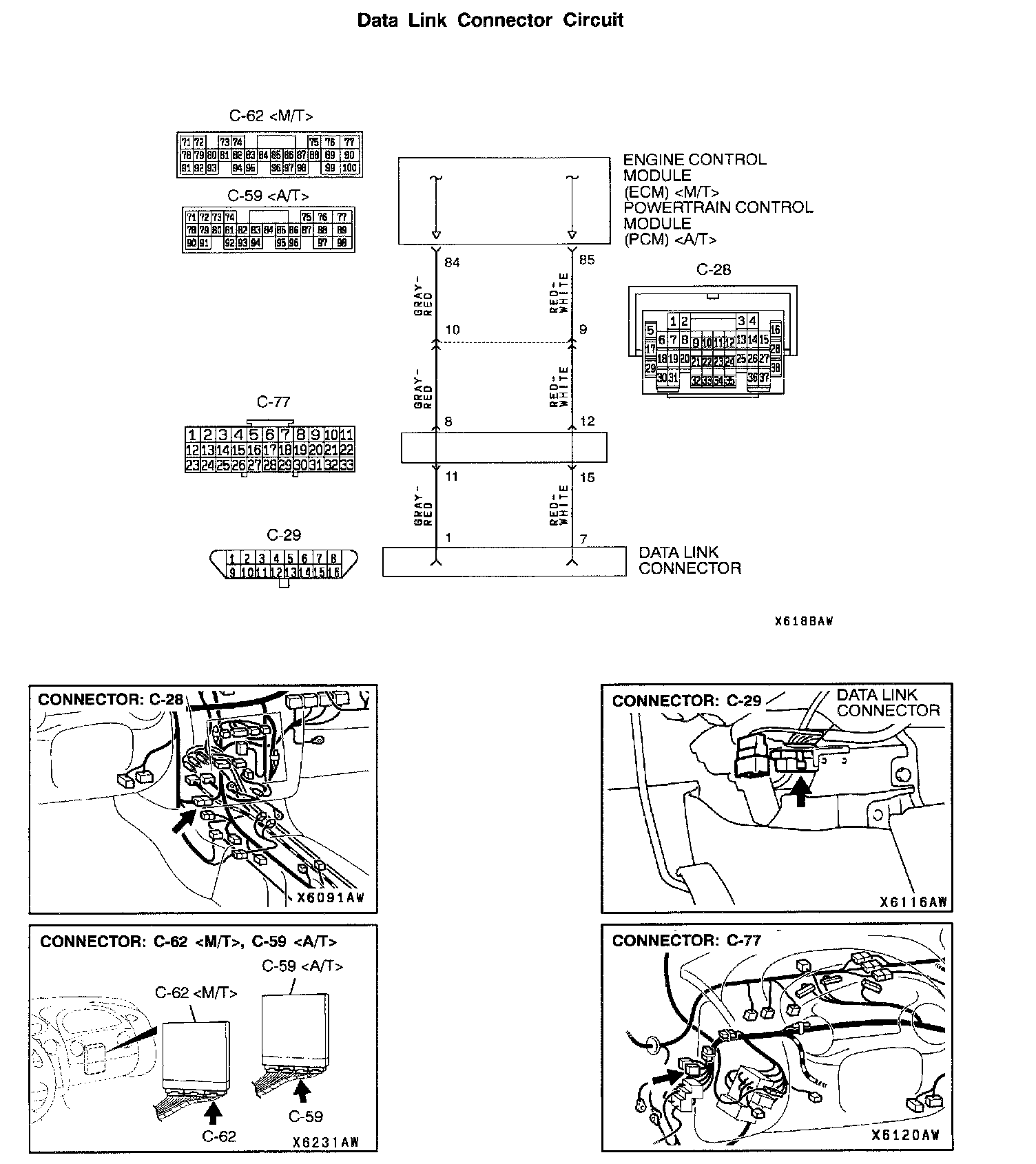 STEP 1. Check the harness wire between data link connector C-29 and ECM connector C-62