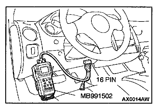 1. Connect scan tool MB991502 to the data link connector.