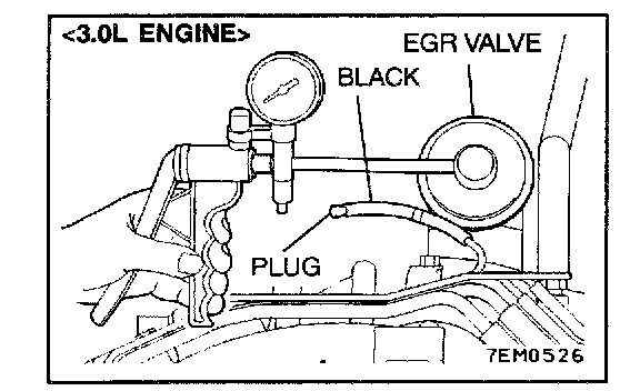 6. The engine idling speed should be rough when a vacuum of 29 kPa (8.7 in.Hg) or more is applied to the EGR valve.