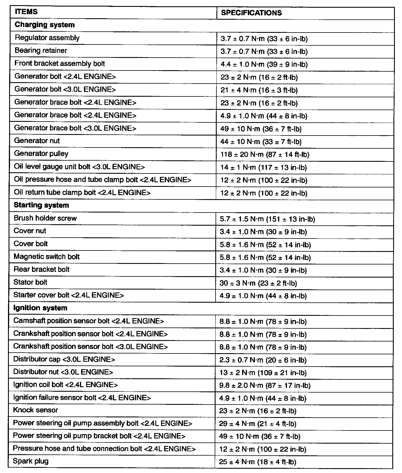 Fastener Tightening Specifications: