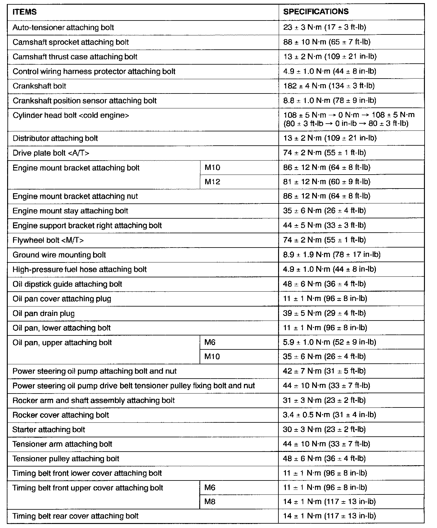 FASTENER TIGHTENING SPECIFICATIONS