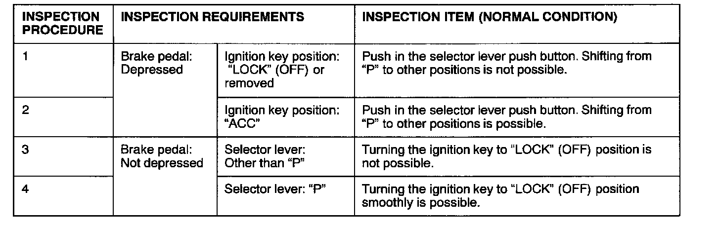 KEY INTERLOCK MECHANISM CHECK1. Carry out the following inspection.