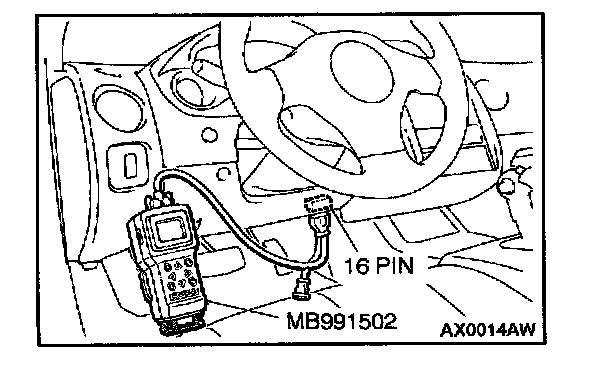 1. Connect scan tool MB991502 to the data link connector.