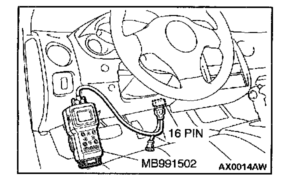 1. Connect scan tool MB991502 to the data link connector. When not using scan tool follow the steps below.