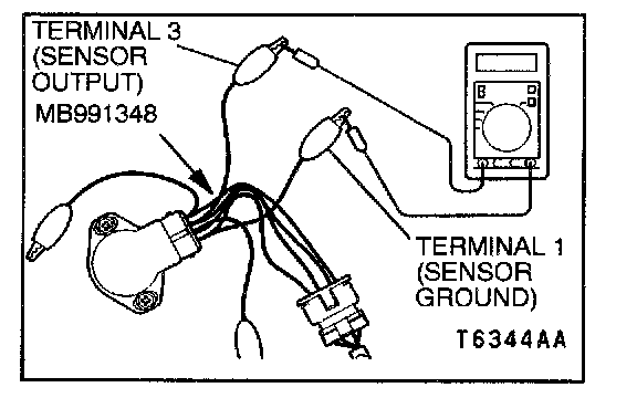 2. Connect a digital voltmeter between throttle position sensor terminal 3 (sensor output) and terminal 1 (sensor ground).