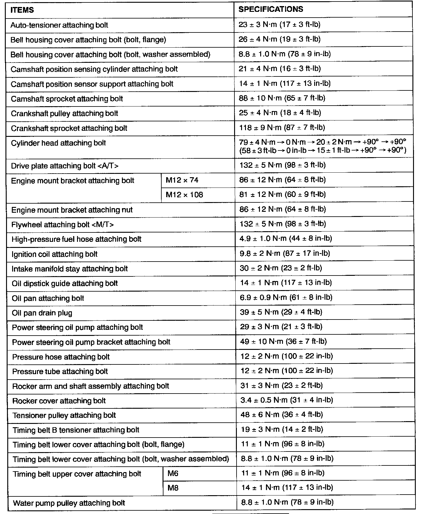 Torque Specifications