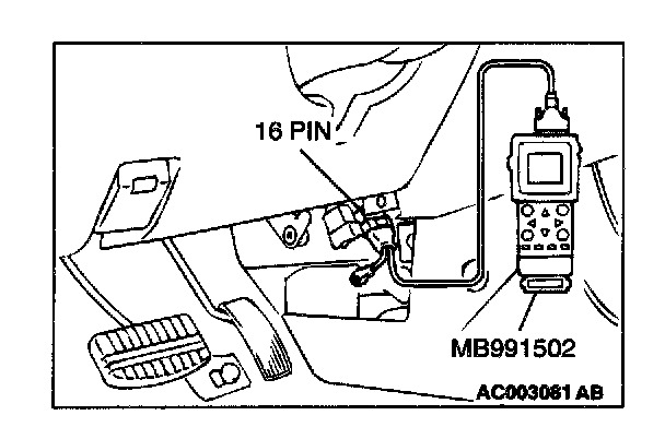 CAUTION: To prevent damage to scan tool MB991502, always turn the ignition switch to the "LOCK" ("OFF") position before connecting or disconnecting scan tool MB991502.