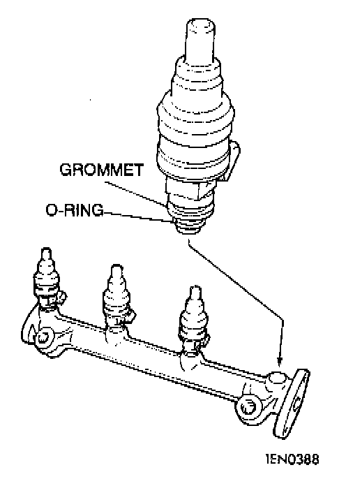 1. Apply a thin coat of clean engine oil to the O-ring, and then insert the injector into the fuel rail.