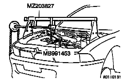 2. Remove the special tools MB991453 and MZ203827 which was attached when the transaxle assembly was removed.