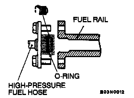CAUTION: Do not let any engine oil get into the fuel rail.
