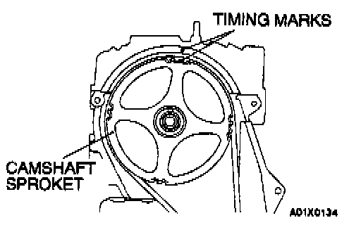 1. Turn the crankshaft in the forward direction (to the right) to align the camshaft sprocket timing marks.
