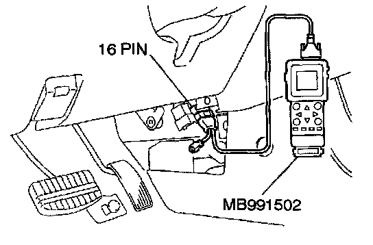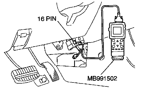 STEP 2. Using scan tool MB991502, read the diagnostic trouble code (DTC).